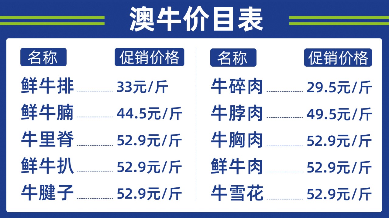 那么此次进口活牛什么时候能够买到呢?本批澳牛将于11月9号上市销售,市民可在海南各大商超、农贸市场及华澳鲜牛直营店购买。注意了!超值抢鲜价,全场牛肉8折起!